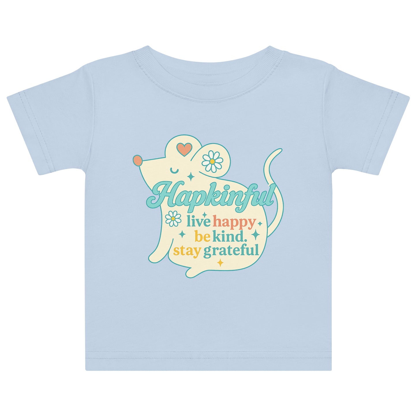 The Inspirational Collection of baby tshirts are a beautiful addition to any baby's wardrobe. There are many designs of animals from the farm, zoo and ocean each with the inspirational Hapkinful message 'Hapkinful. Live Happy. Be Kind. Stay Grateful.