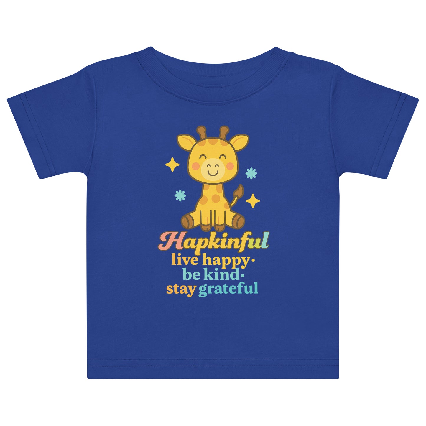The Inspirational Collection of baby tshirts are a beautiful addition to any baby's wardrobe. There are many designs of animals from the farm, zoo and ocean each with the inspirational Hapkinful message 'Hapkinful. Live Happy. Be Kind. Stay Grateful.
