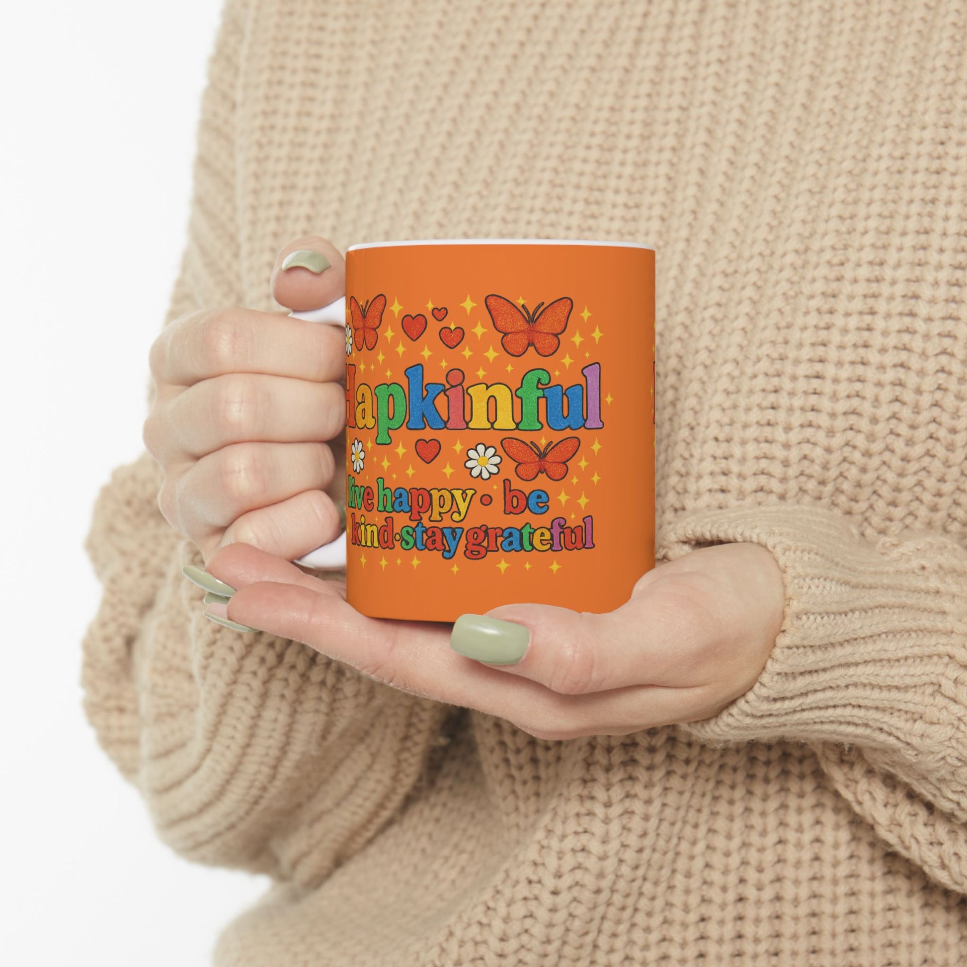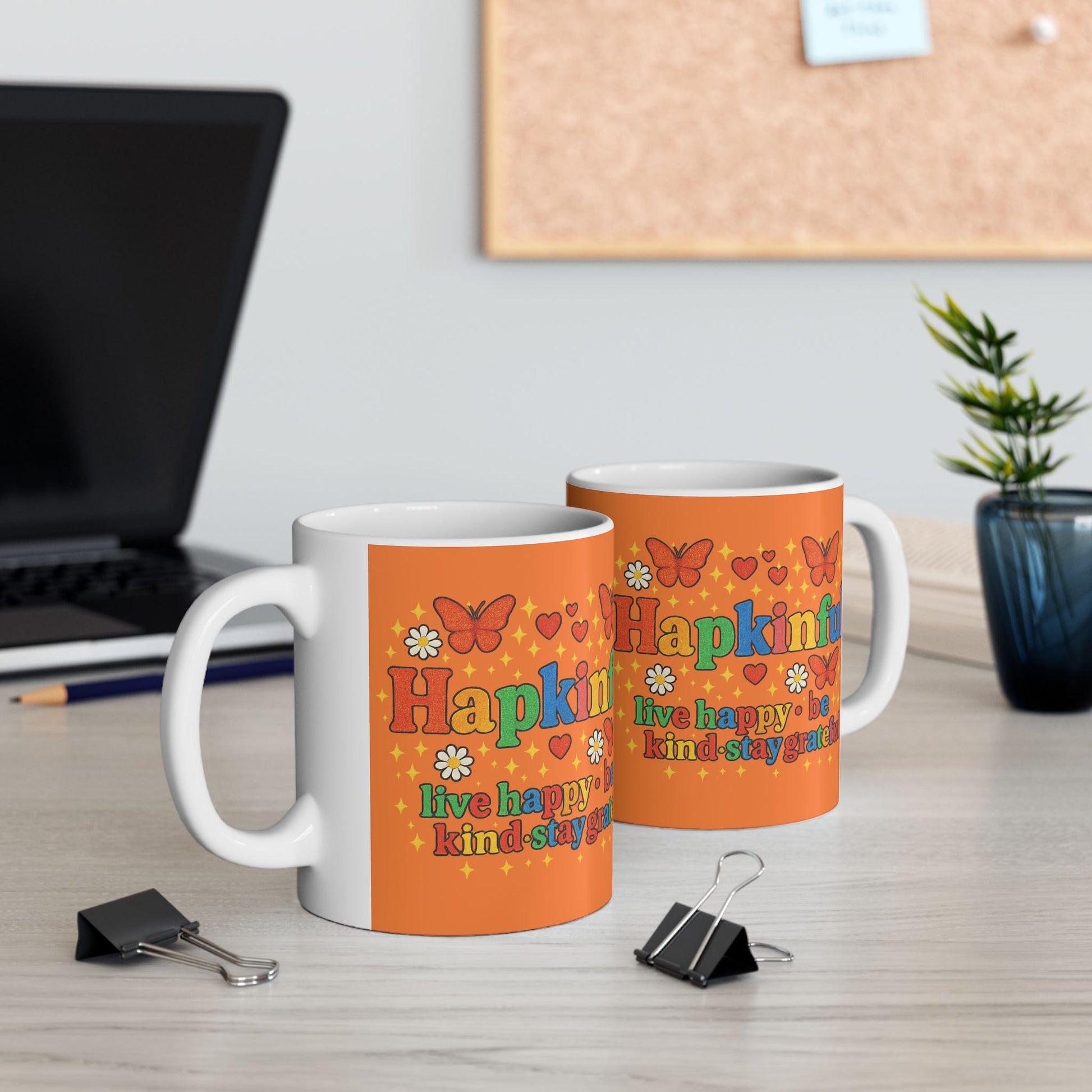 Happy Groovy Butterfly Orange Mug - Hapkinful - Live Happy. Be Kind. Stay Grateful