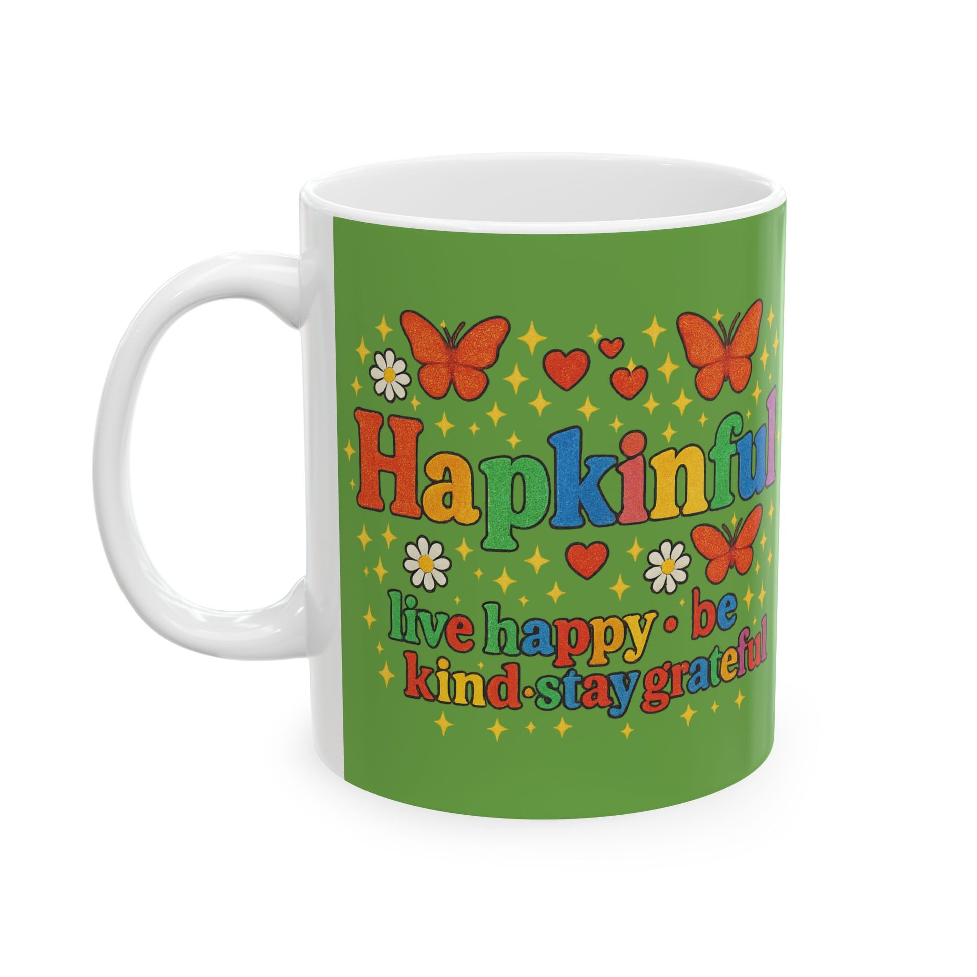 Happy Groovy Butterfly Green Mug - Hapkinful - Live Happy. Be Kind. Stay Grateful 11 oz