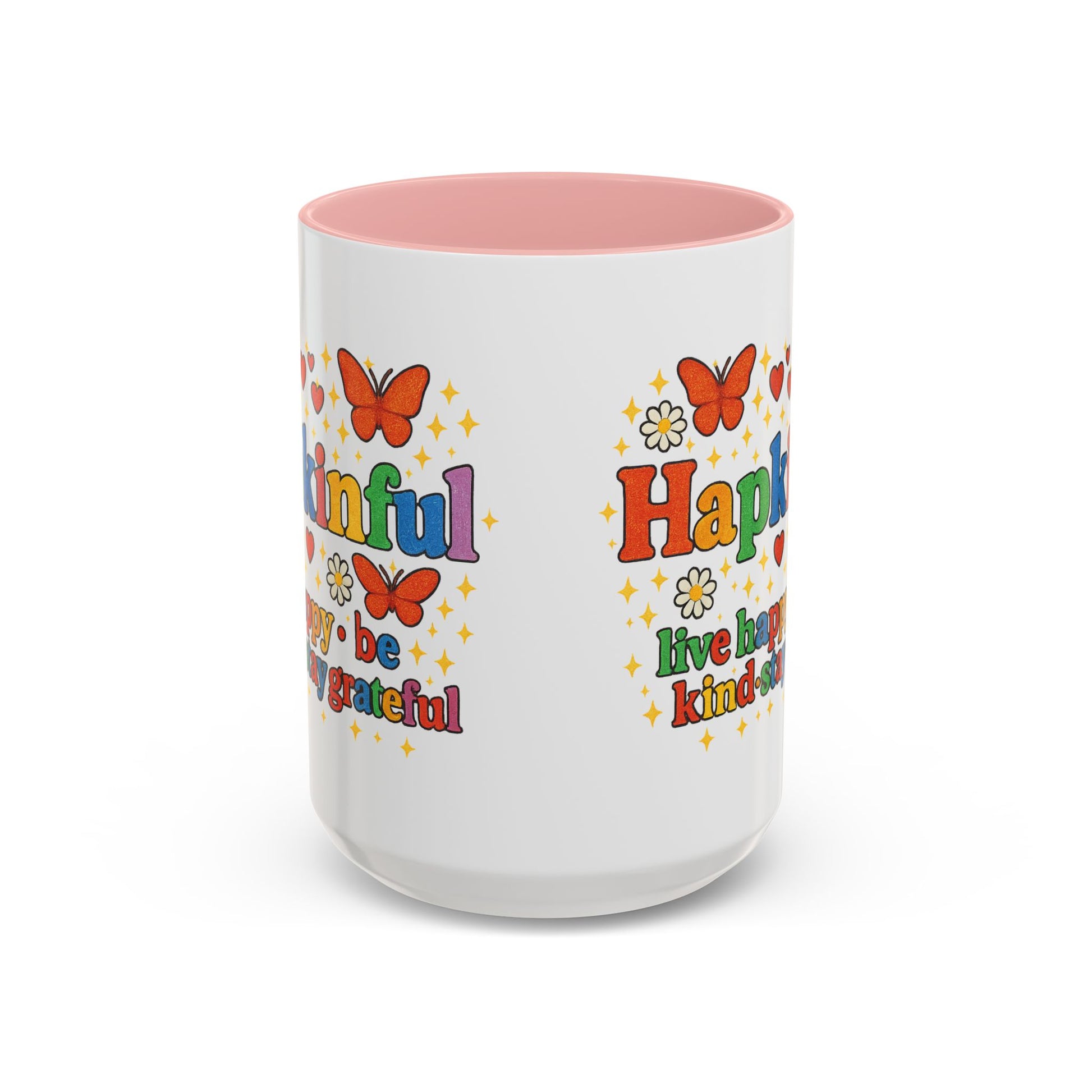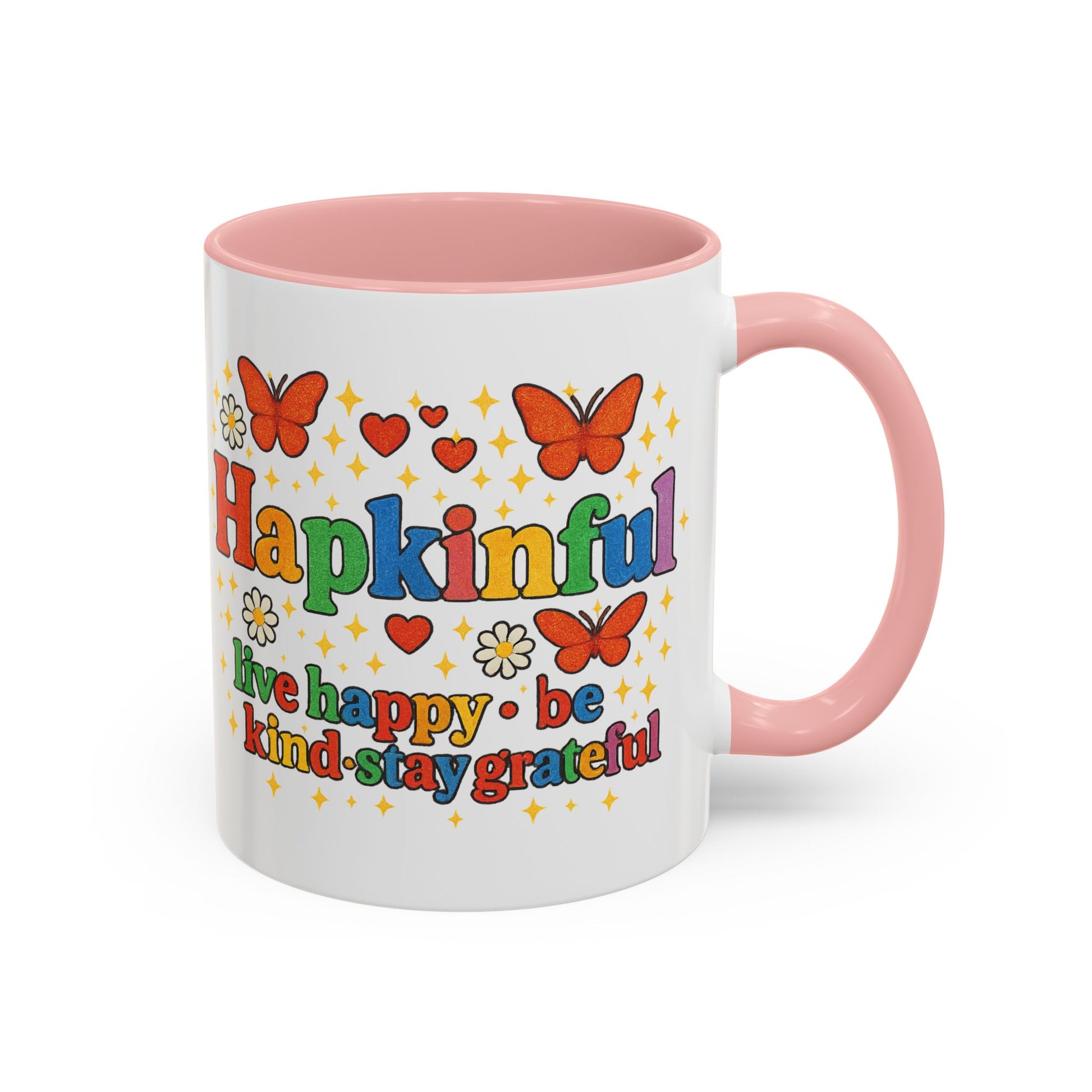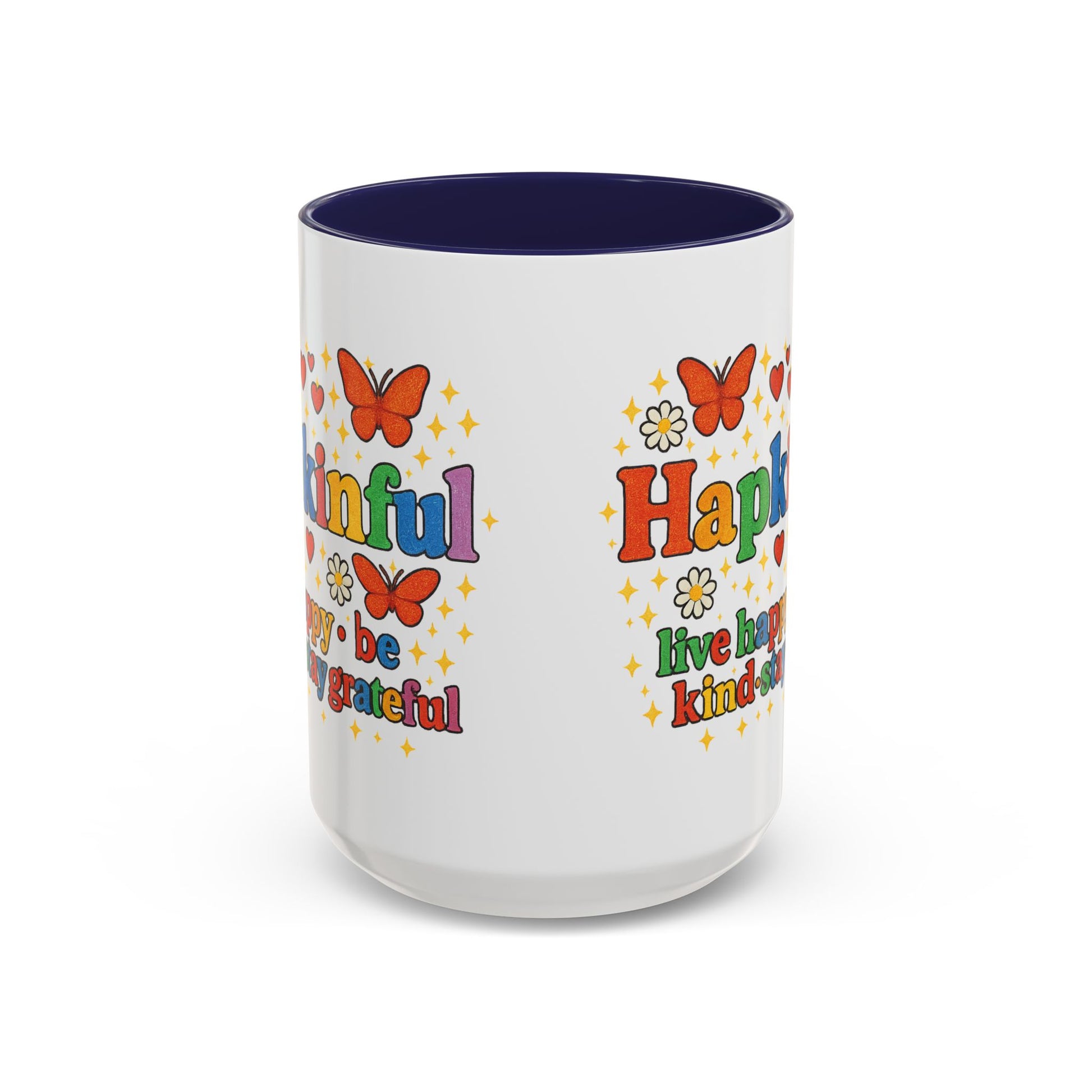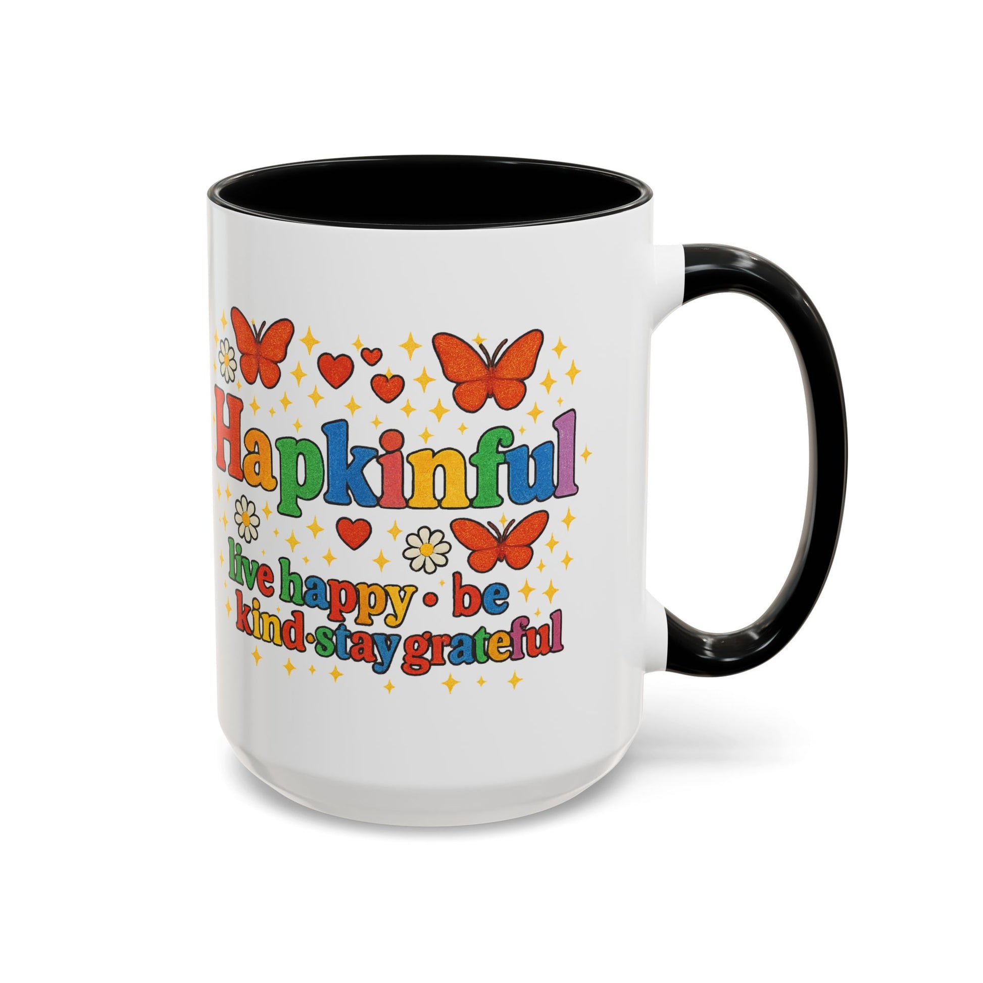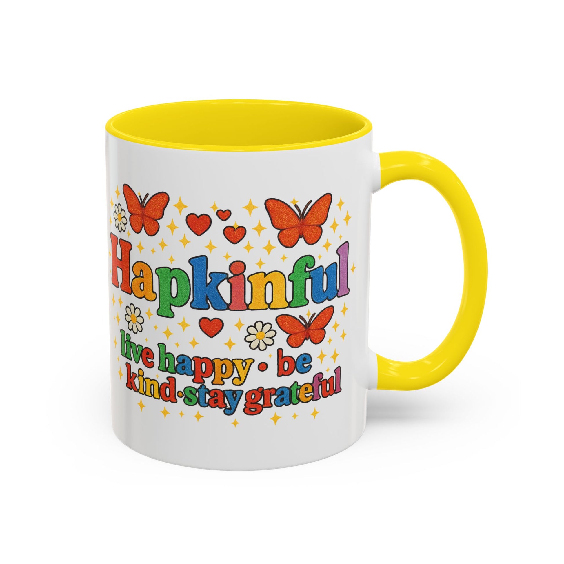 Happy Groovy Butterfly Mug - Hapkinful - Live Happy Be Kind Stay Grateful 11 oz 15 oz