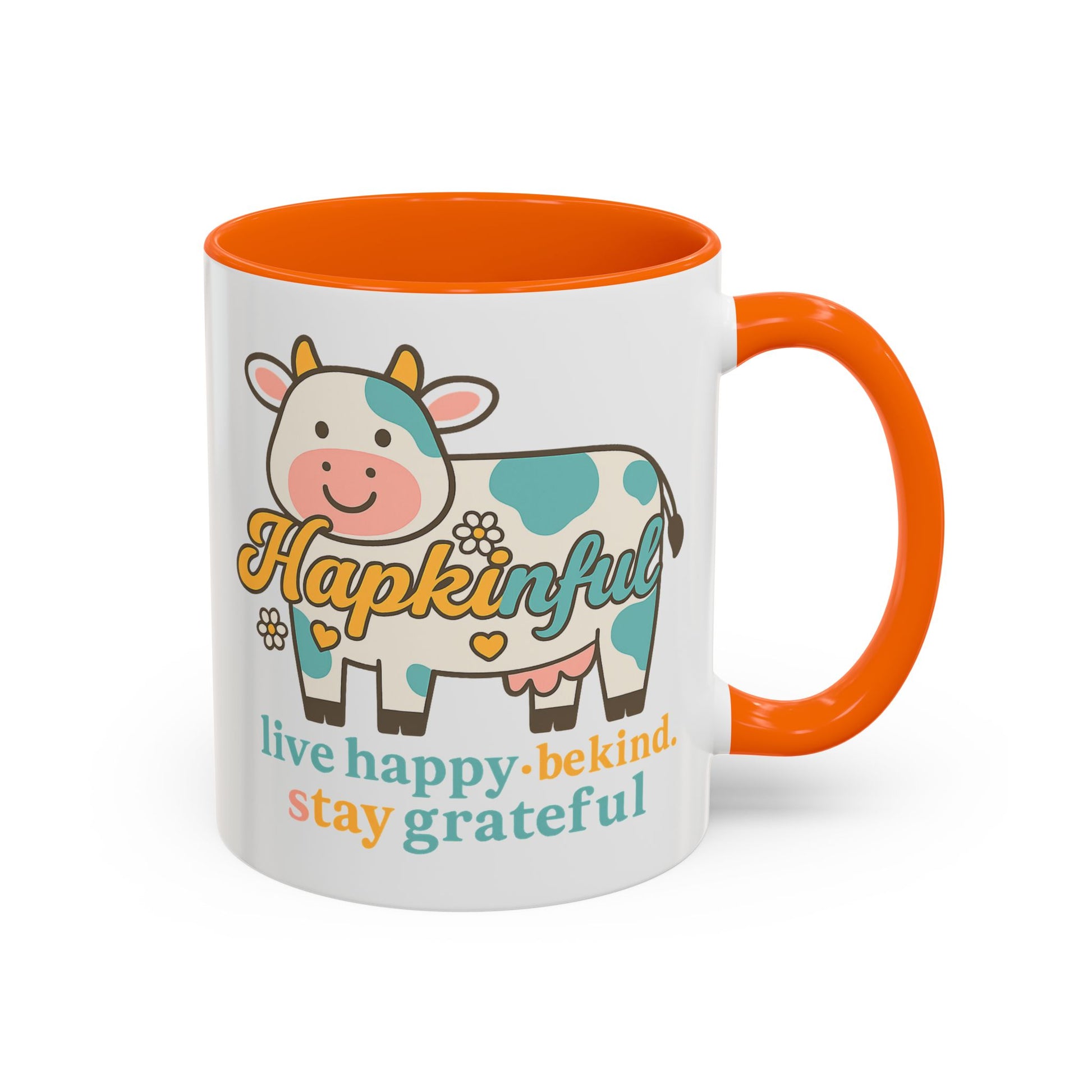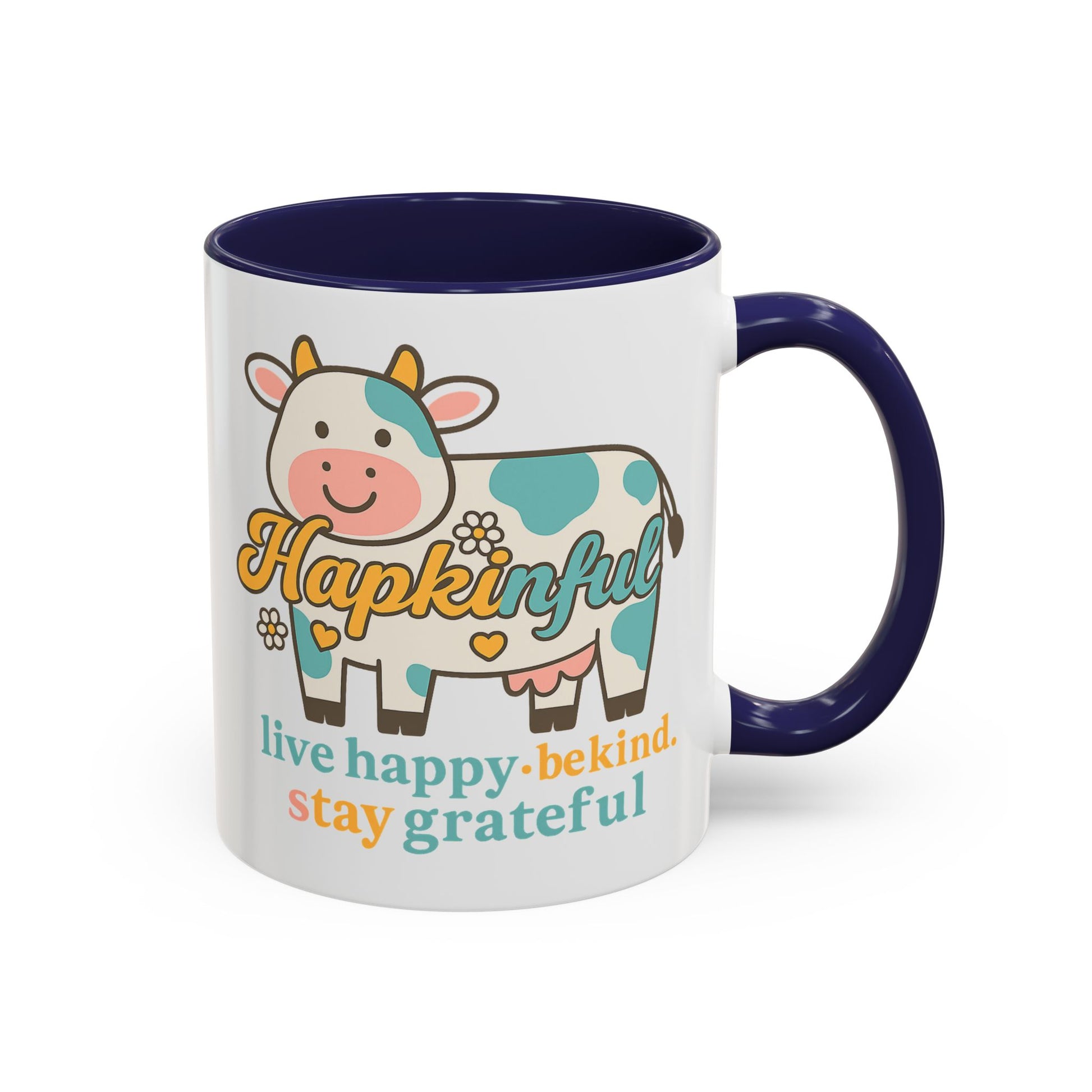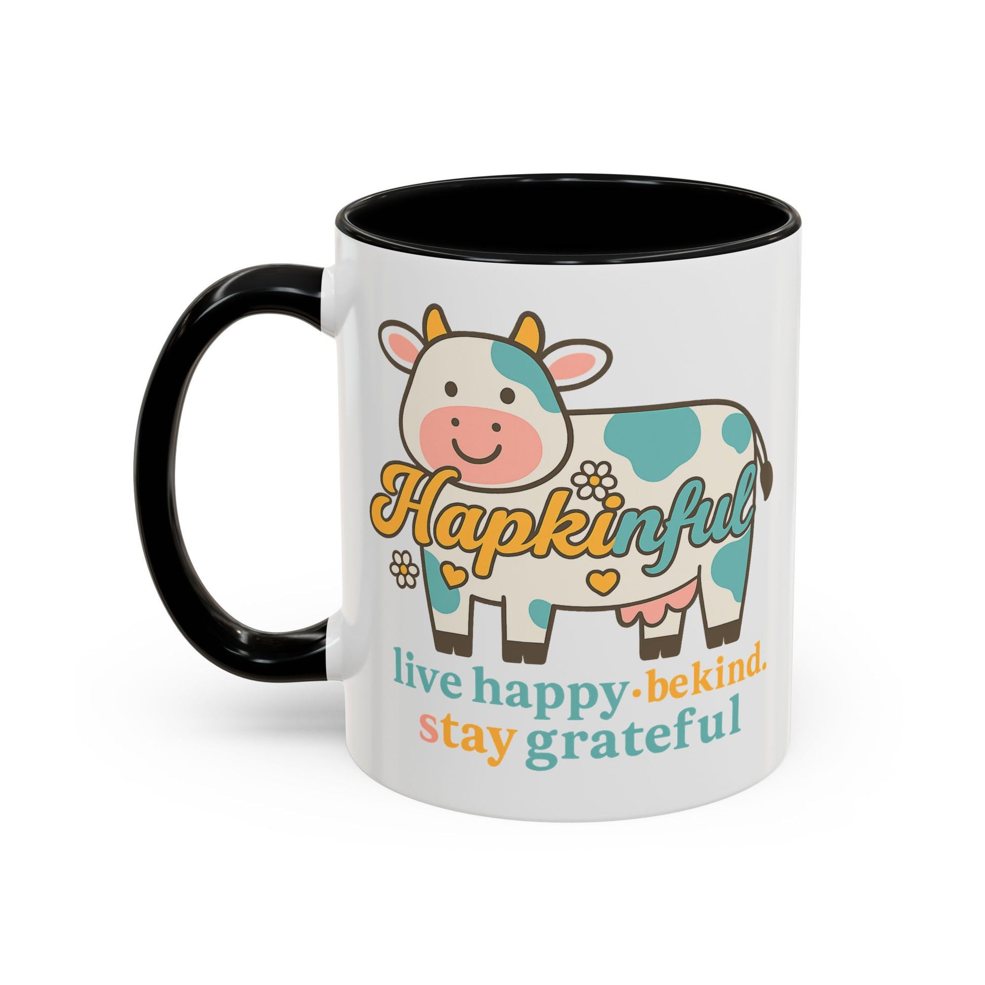 Happy Cow Mug - Hapkinful - Live Happy, Be Kind, Stay Grateful (11 & 15oz)