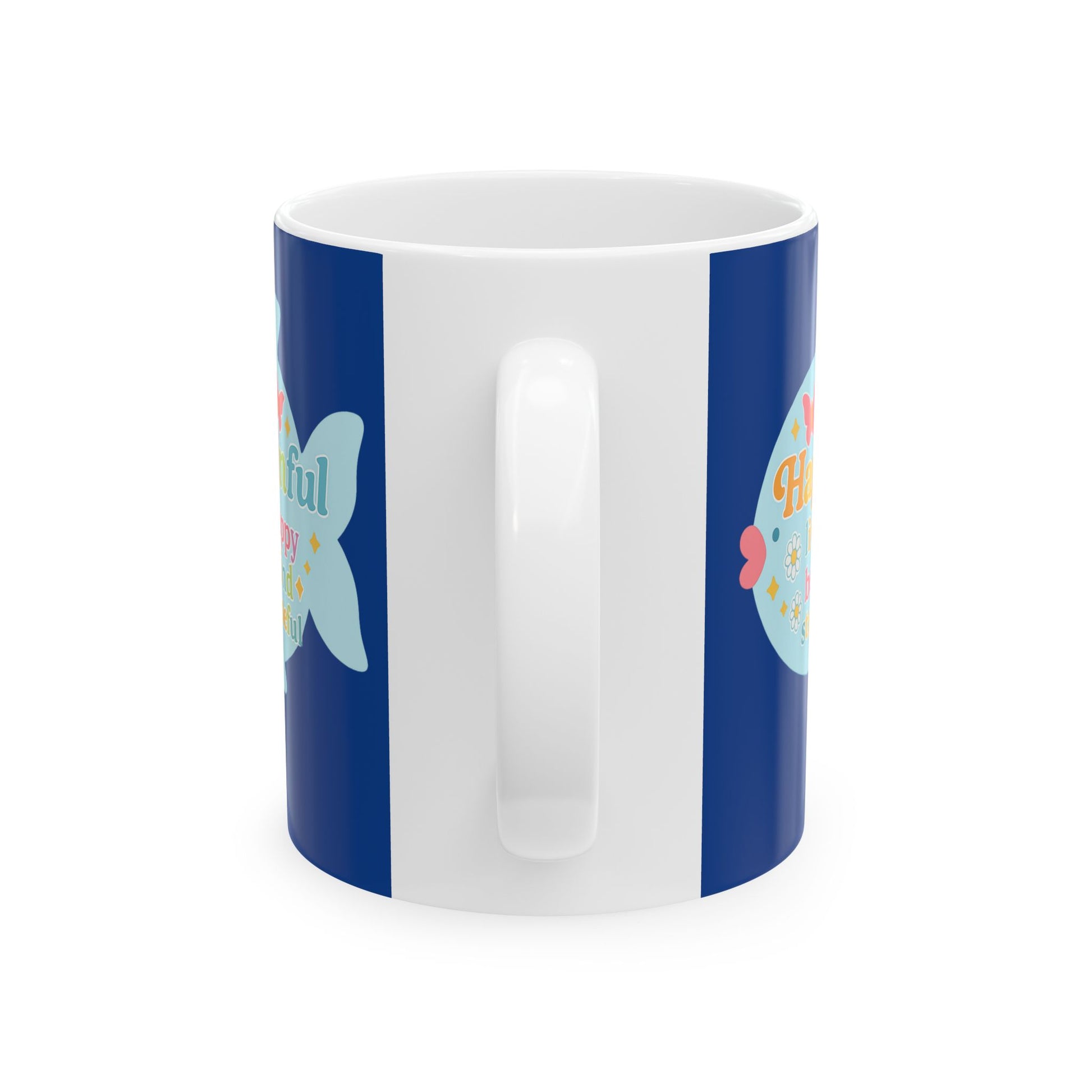 Happy Fish Mug. Live Happy. Be Kind. Stay Grateful