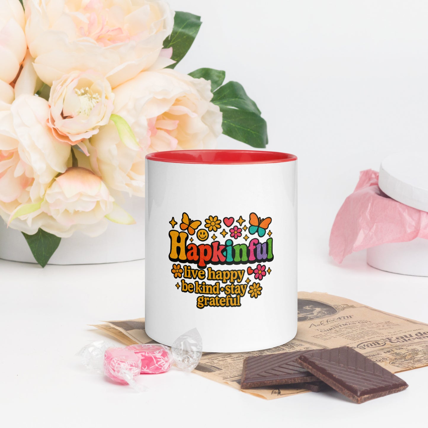 Get your groove on every morning with the Happy Groovy 11oz Mug with colored handle and interior for added happiness. It's not just a mug, it's a reminder to live happily, be kind, and stay grateful. Spread the Hapkinful vibe - Live Happy, Be Kind, Stay Grateful and start your day on a positive note. Let's get in the groove, man!