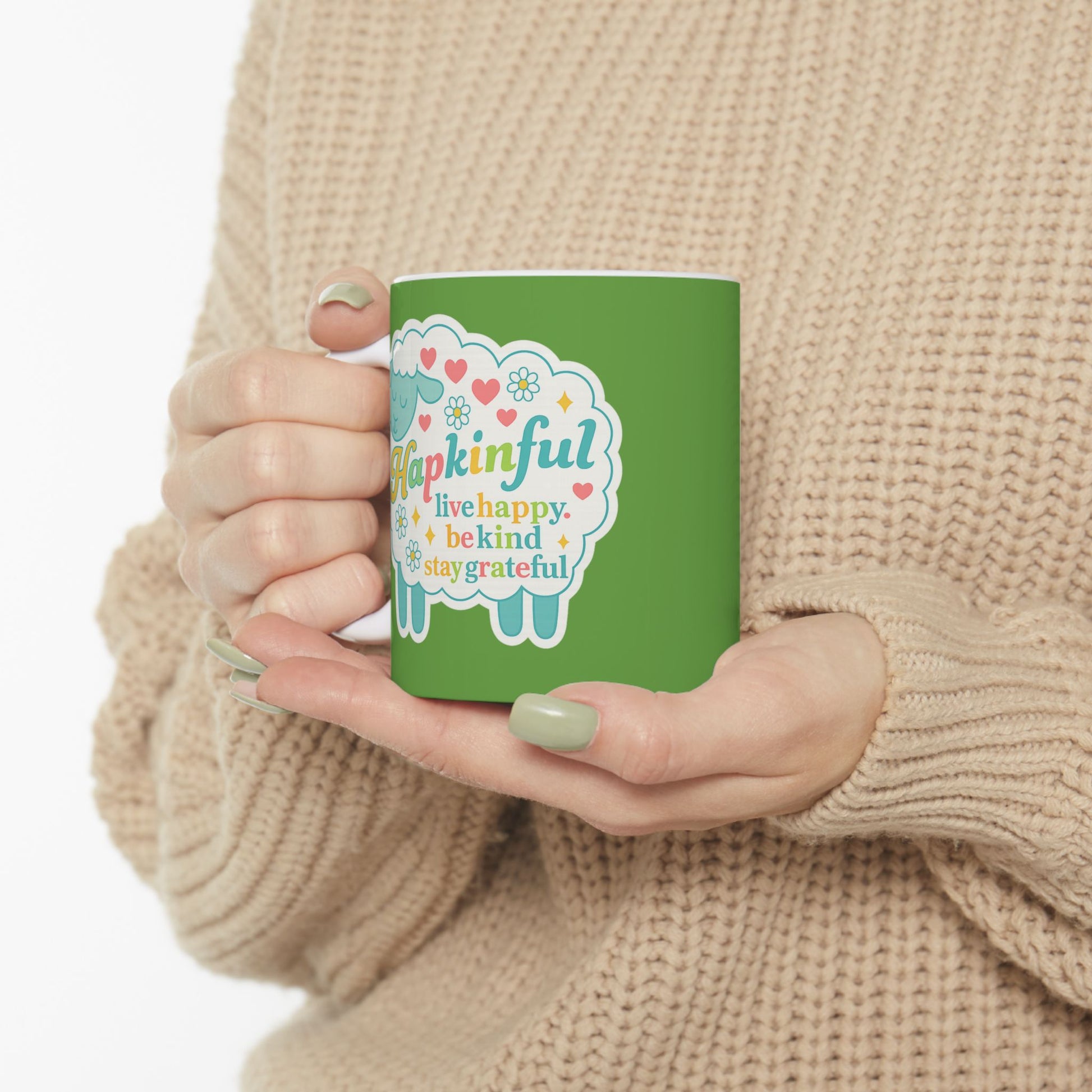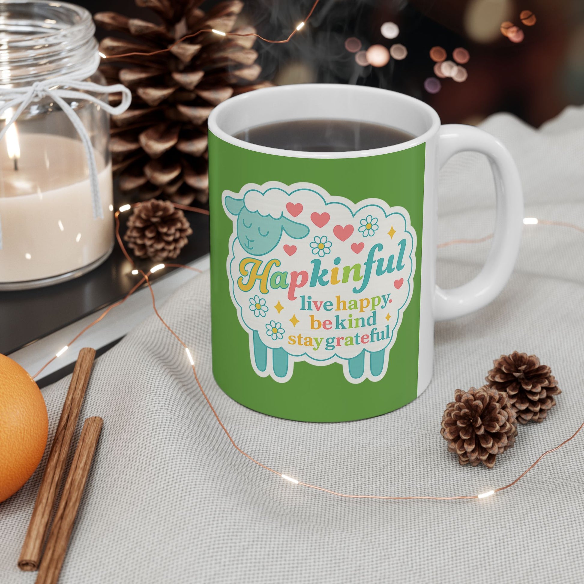 Happy Sheep Mug - Hapkinful Live Happy. Be Kind . Stay Grateful
