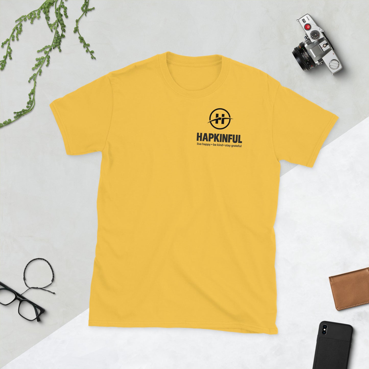 Discover your new favorite tee with the Happy Simple Gildan T-shirt from Hapkinful’s Simple Collection. Crafted from 100% ring-spun cotton, it’s soft, comfy, and perfect for everyday wear. Double stitching on the neckline and sleeves means it’s built to last through all your adventures. Wear it and embrace the vibe: Live Happy. Be Kind. Stay Grateful. Be Hapkinful!