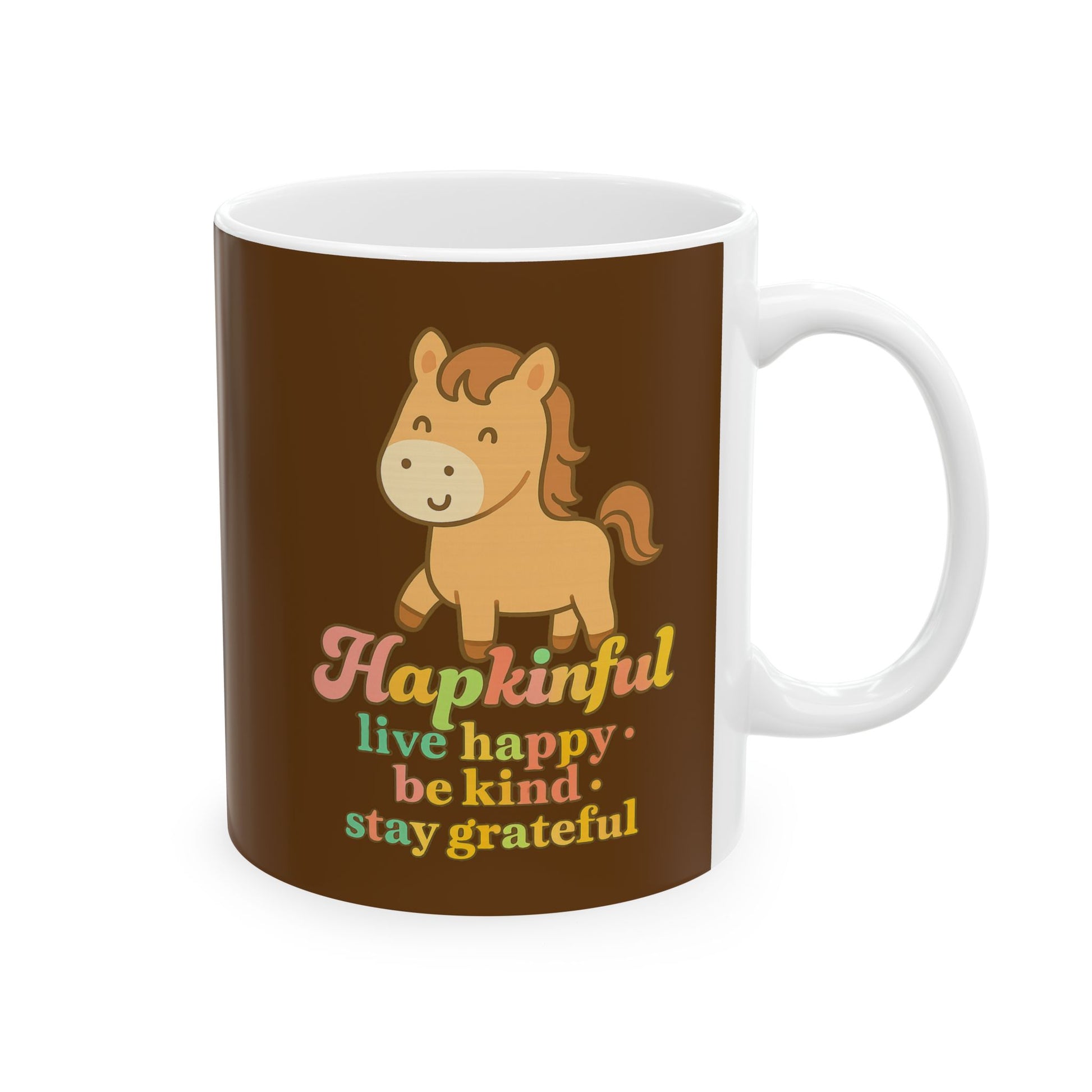 Happy Horse Mug. Hapkinful Live Happy. Be Kind. Stay Grateful 11oz