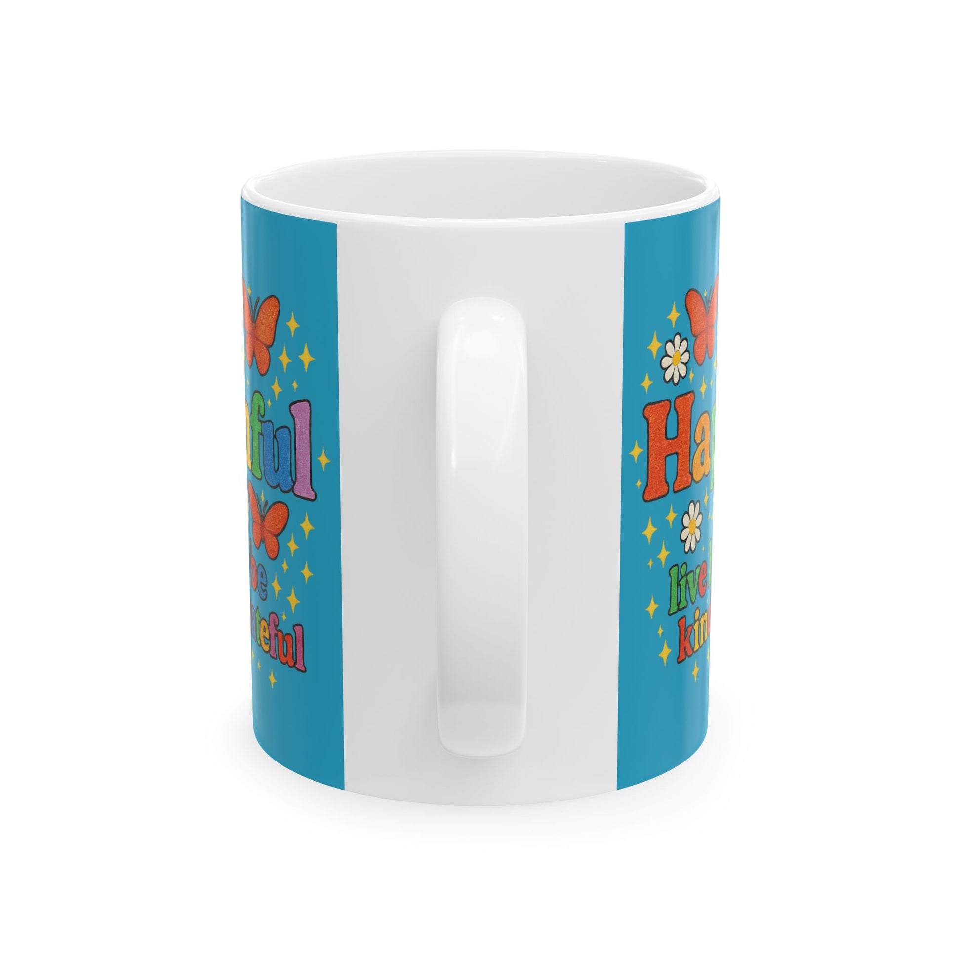 Happy Groovy Butterfly Turqoise Mug - Hapkinful - Live Happy. Be Kind. Stay Grateful 11 oz