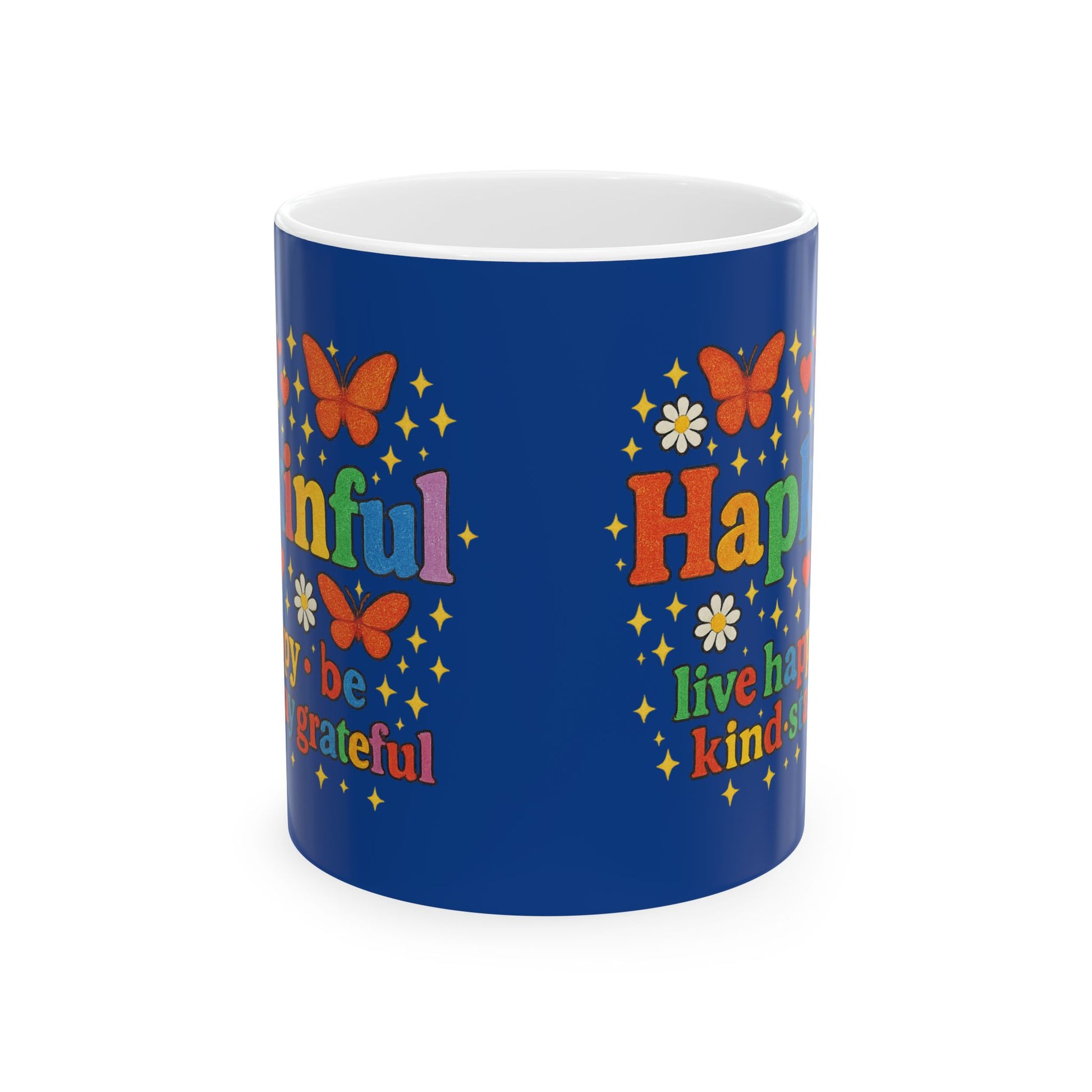 Happy Groovy Butterly Navy Blue Mug - Hapkinful - Live Happy. Be Kind. Stay Grateful. 11oz