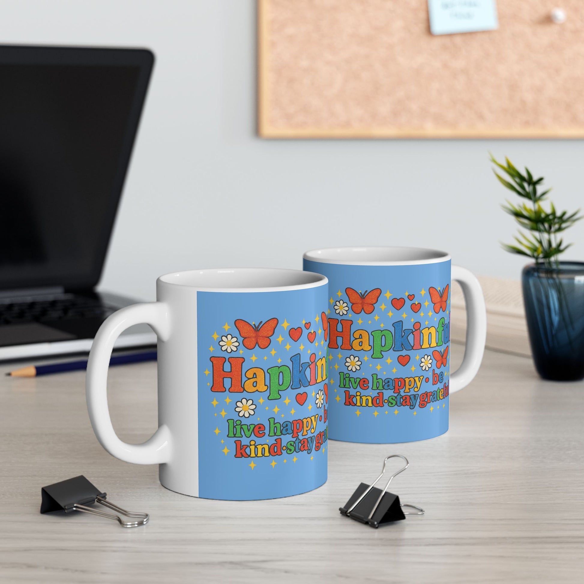 Happy Groovy Butterfly Light Blue Mug - Hapkinful - Live Happy.Be Kind. Stay Grateful