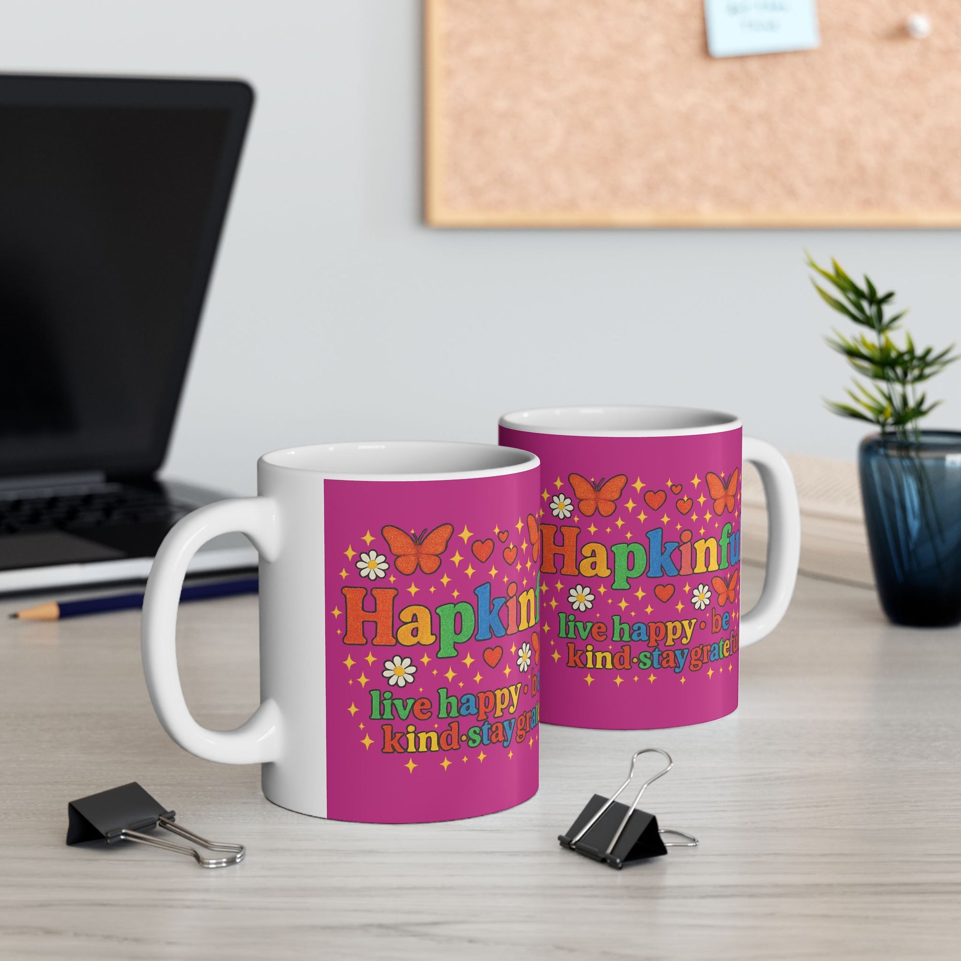 Happy Groovy Butterfly Lavender Mug - Hapkinful -Live Happy. Be Kind. Stay Grateful 11oz