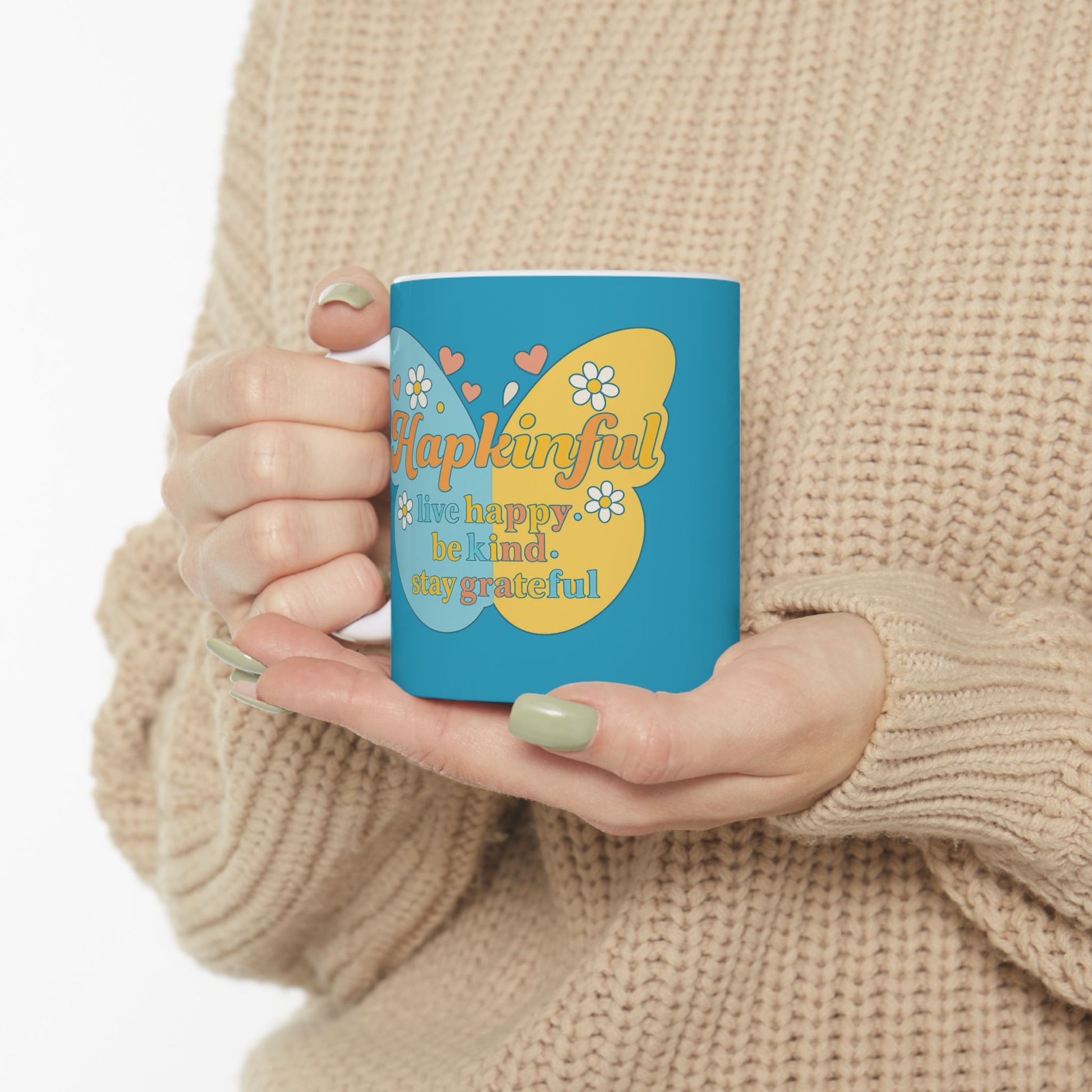 Happy Butterfly Mug - Hapkinful - Live Happy, Be Kid. Stay Grateful 11 oz