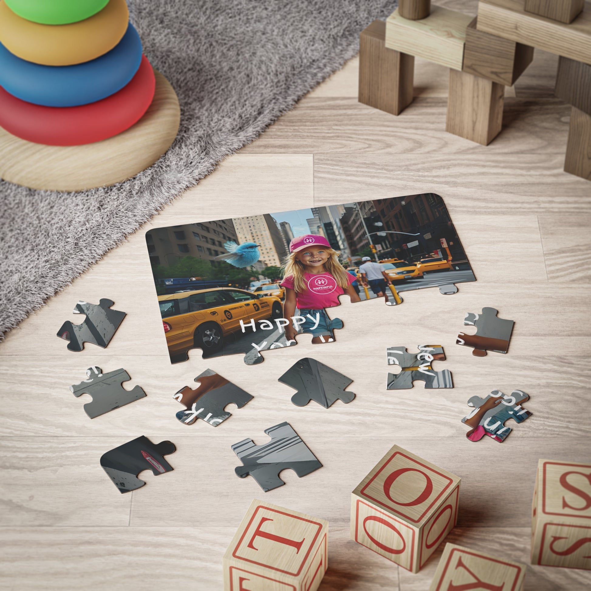 Hapkinful and Wiggle in New York Jigsaw Puzzle. "Street of New York!" 30 Pieces. Ages 3 and up.