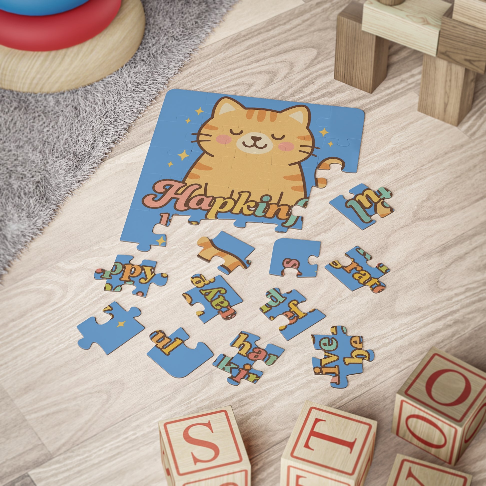 A beautiful Happy Cat Jigsaw Puzzle! With 30 pieces, this puzzle not only teaches cognitive skills, such as reading and speech but also promotes happiness, kindness, and gratitude. Designed for ages 3 and up, it's perfect for little hands to develop coordination while learning important values. Get ready for some adventurous fun! Also available in tshirts, mugs and stickers. Have fun collecting them all........