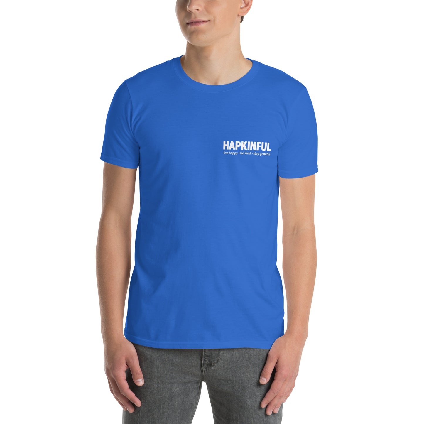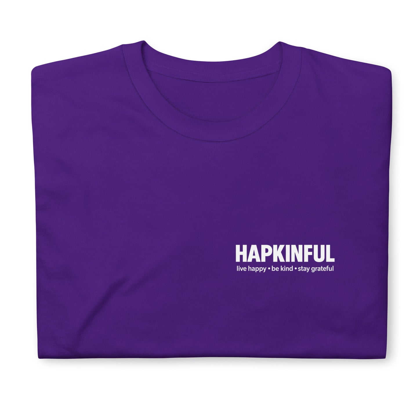Discover your new favorite tee with the Happy Simple Gildan T-shirt from Hapkinful’s Simple Collection. Crafted from 100% ring-spun cotton, it’s soft, comfy, and perfect for everyday wear. Double stitching on the neckline and sleeves means it’s built to last through all your adventures. Wear it and embrace the vibe: Live Happy. Be Kind. Stay Grateful. Be Hapkinful!